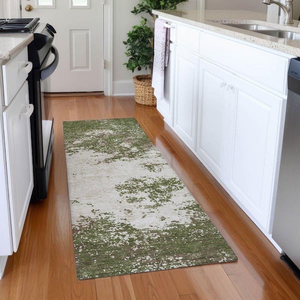 Mayfield Premium Machine Washable Abstract AMF1027 Olive 2 ft. 3 in. x 7 ft. 6 in. Runner Rug