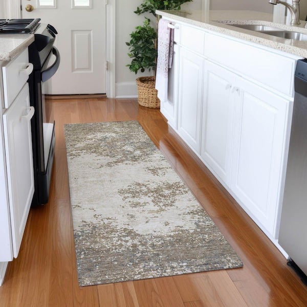 Mayfield Premium Machine Washable Abstract AMF1027 Taupe 2 ft. 3 in. x 7 ft. 6 in. Runner Rug