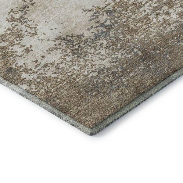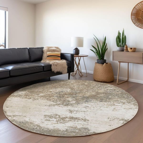 Mayfield Premium Machine Washable Abstract AMF1027 Taupe 8 ft. x 8 ft. Round Rug