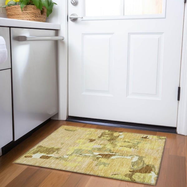 Mayfield Premium Machine Washable Abstract AMF1028 Gold 2 ft. x 3 ft. Area Rug