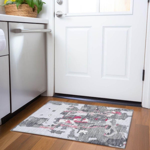 Mayfield Premium Machine Washable Abstract AMF1028 Gray 2 ft. x 3 ft. Area Rug