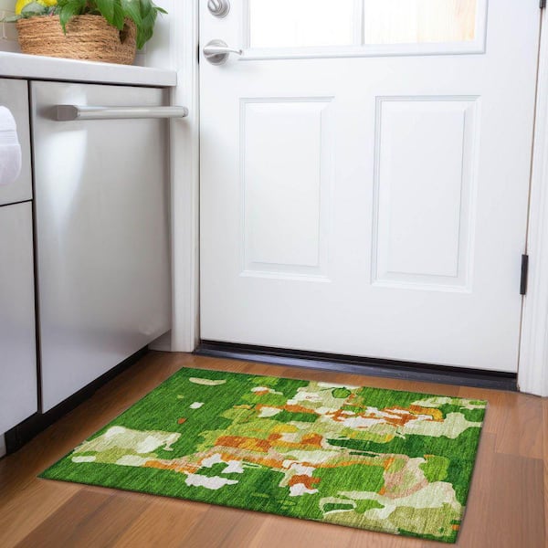 Mayfield Premium Machine Washable Abstract AMF1028 Green 2 ft. x 3 ft. Area Rug