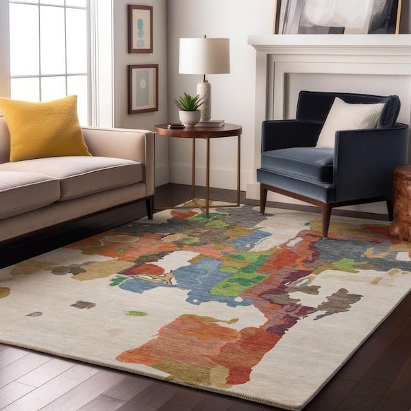 Mayfield Premium Machine Washable Abstract AMF1028 Ivory 3 ft. x 5 ft. Area Rug