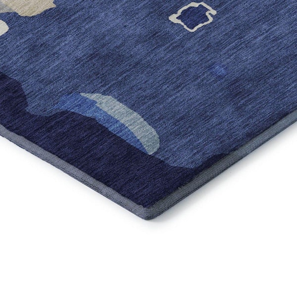 Mayfield Premium Machine Washable Abstract AMF1028 Navy 8 ft. x 8 ft. Round Rug