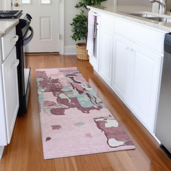Mayfield Premium Machine Washable Abstract AMF1028 Pink 2 ft. 3 in. x 7 ft. 6 in. Runner Rug