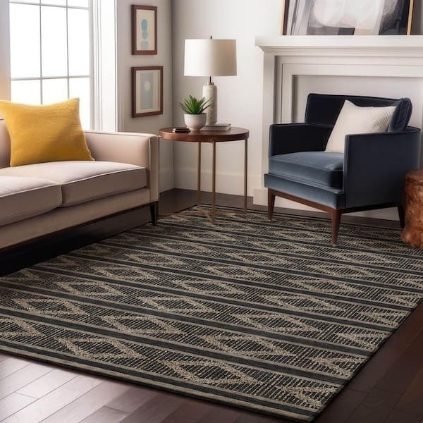 Mayfield Premium Machine Washable Abstract AMF1029 Black 3 ft. x 4 ft. Area Rug