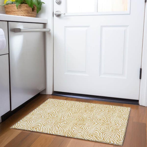 Mayfield Premium Machine Washable Abstract AMF1030 Gold 2 ft. x 3 ft. Area Rug
