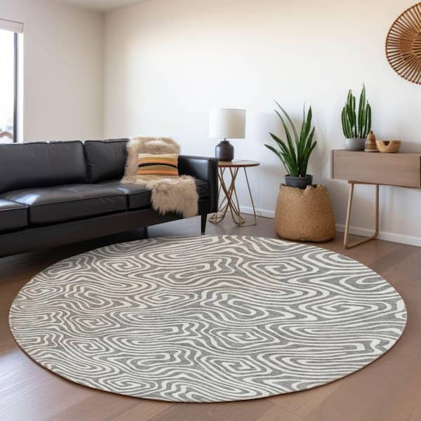 Mayfield Premium Machine Washable Abstract AMF1030 Gray 8 ft. x 8 ft. Round Rug