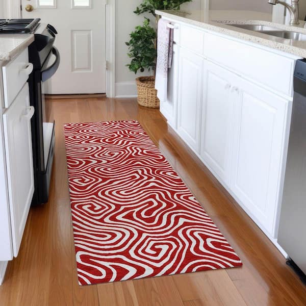 Mayfield Premium Machine Washable Abstract AMF1030 Red 2 ft. 3 in. x 7 ft. 6 in. Runner Rug