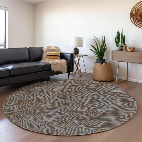 Mayfield Premium Machine Washable Abstract AMF1031 Brown 8 ft. x 8 ft. Round Rug