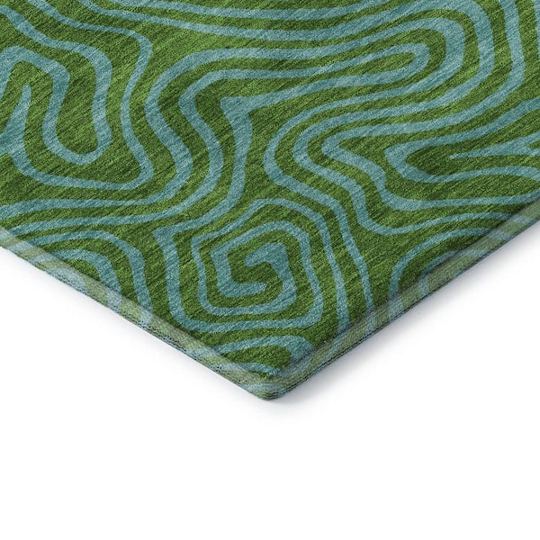 Mayfield Premium Machine Washable Abstract AMF1031 Green 3 ft. x 4 ft. Area Rug