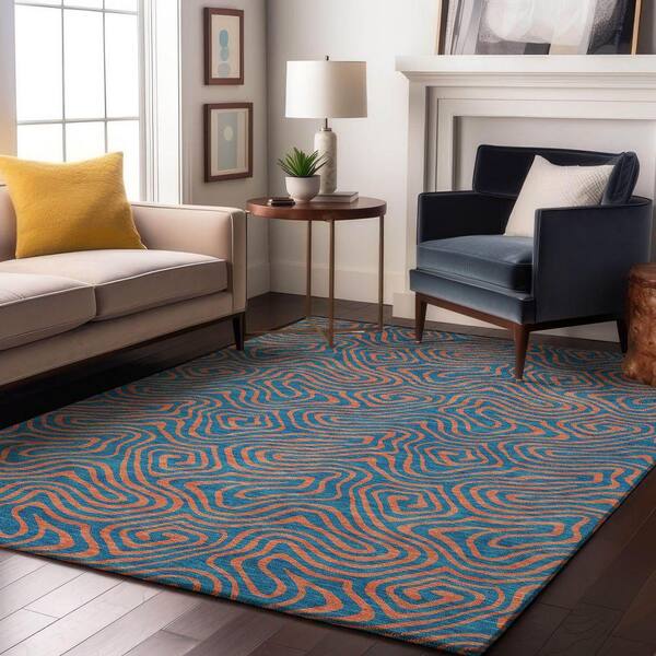 Mayfield Premium Machine Washable Abstract AMF1031 Teal 9 ft. x 12 ft. Area Rug