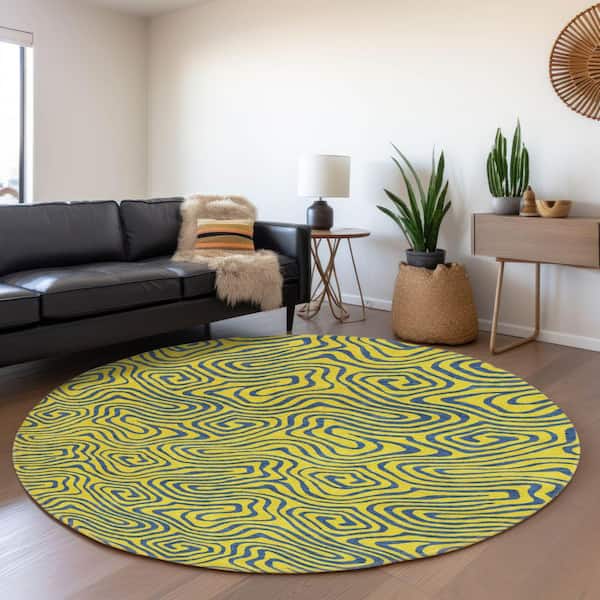 Mayfield Premium Machine Washable Abstract AMF1031 Yellow 8 ft. x 8 ft. Round Rug