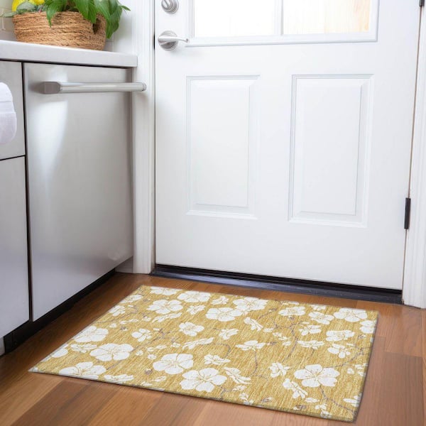 Mayfield Premium Machine Washable Abstract AMF1032 Gold 2 ft. x 3 ft. Area Rug