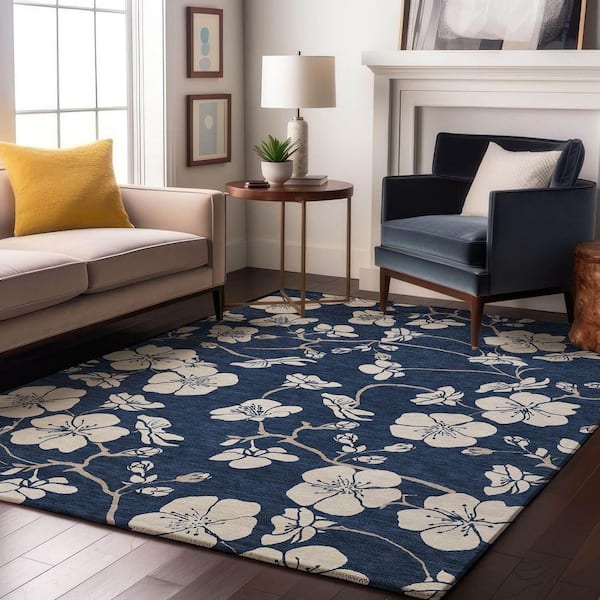 Mayfield Premium Machine Washable Abstract AMF1032 Navy 3 ft. x 5 ft. Area Rug