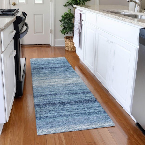 Mayfield Premium Machine Washable Abstract AMF1033 Blue 2 ft. 3 in. x 7 ft. 6 in. Runner Rug
