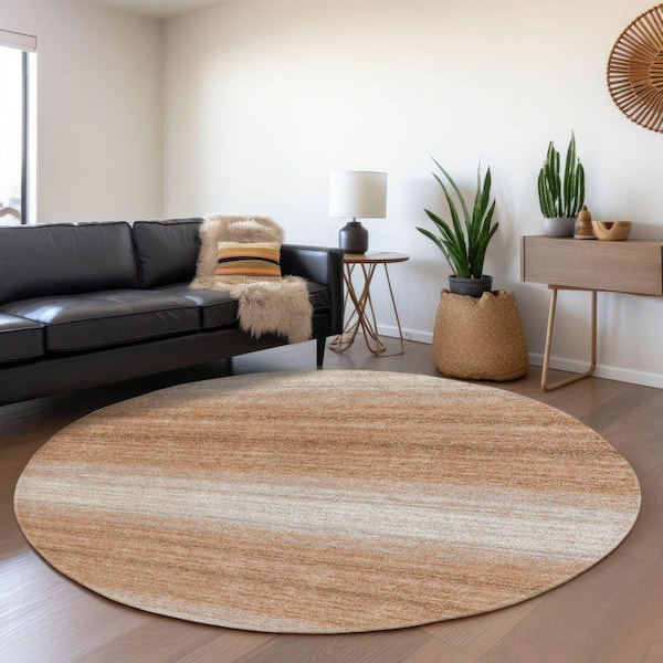 Mayfield Premium Machine Washable Abstract AMF1033 Copper 8 ft. x 8 ft. Round Rug