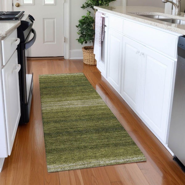 Mayfield Premium Machine Washable Abstract AMF1033 Olive 2 ft. 3 in. x 7 ft. 6 in. Runner Rug