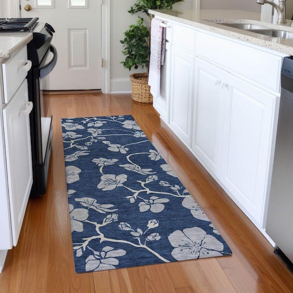 Mayfield Premium Machine Washable Abstract AMF1034 Navy 2 ft. 3 in. x 7 ft. 6 in. Runner Rug
