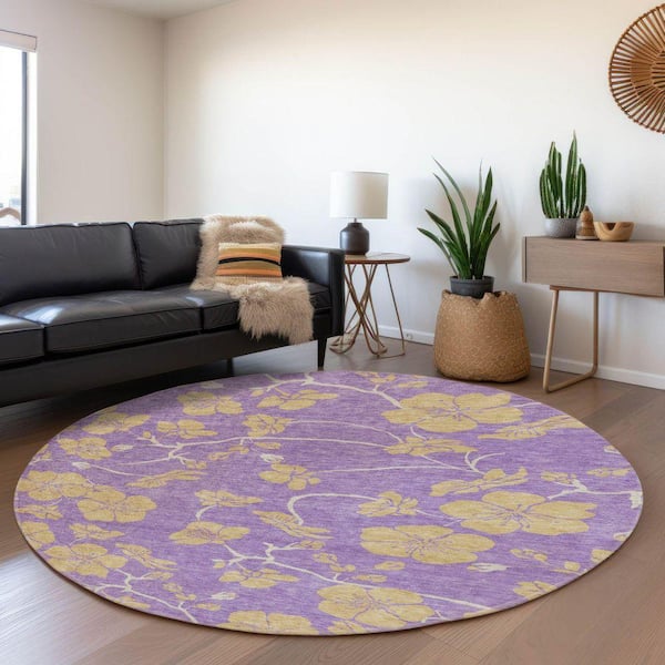 Mayfield Premium Machine Washable Abstract AMF1034 Purple 8 ft. x 8 ft. Round Rug