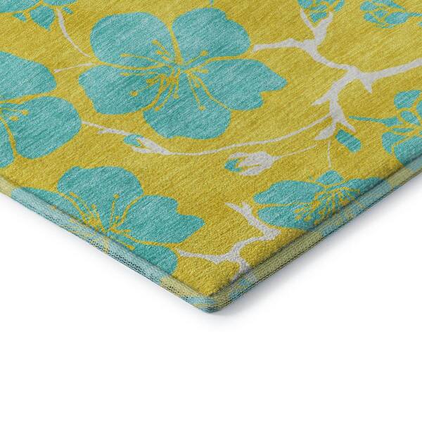 Mayfield Premium Machine Washable Abstract AMF1034 Yellow 8 ft. x 8 ft. Round Rug