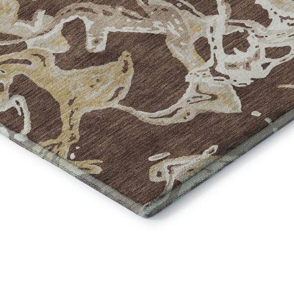 Mayfield Premium Machine Washable Abstract AMF1035 Brown 8 ft. x 8 ft. Round Rug