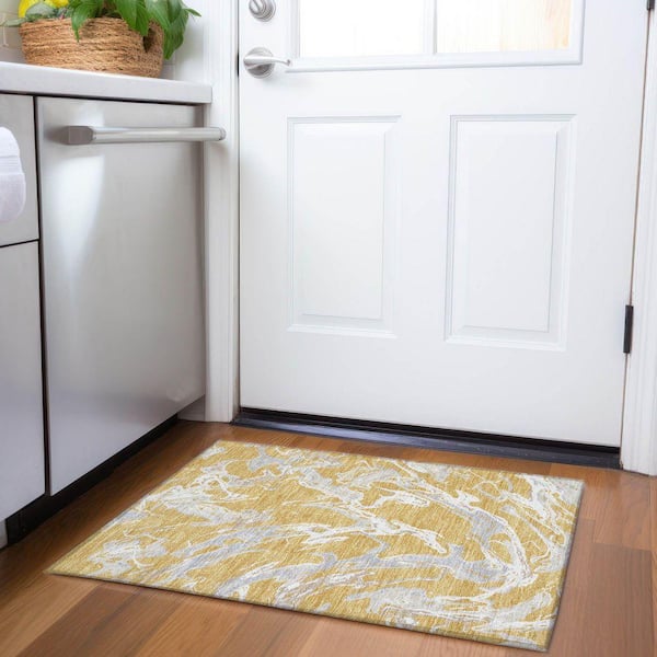 Mayfield Premium Machine Washable Abstract AMF1035 Gold 2 ft. x 3 ft. Area Rug