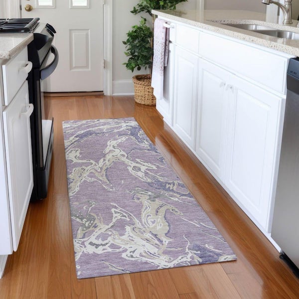 Mayfield Premium Machine Washable Abstract AMF1035 Lavender 2 ft. 3 in. x 7 ft. 6 in. Runner Rug