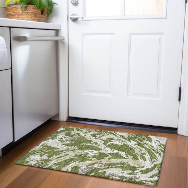 Mayfield Premium Machine Washable Abstract AMF1035 Olive 2 ft. x 3 ft. Area Rug