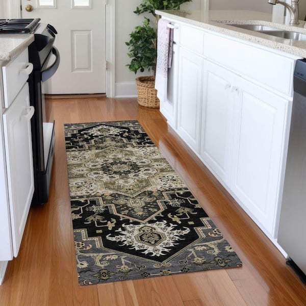 Mayfield Premium Machine Washable Abstract AMF1036 Black 2 ft. 3 in. x 7 ft. 6 in. Runner Rug