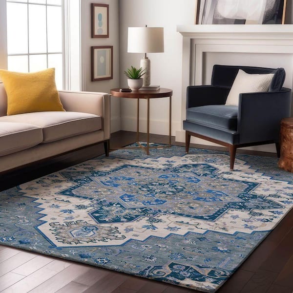 Mayfield Premium Machine Washable Abstract AMF1036 Blue 3 ft. x 4 ft. Area Rug