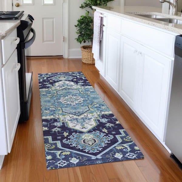 Mayfield Premium Machine Washable Abstract AMF1036 Navy 2 ft. 3 in. x 7 ft. 6 in. Runner Rug