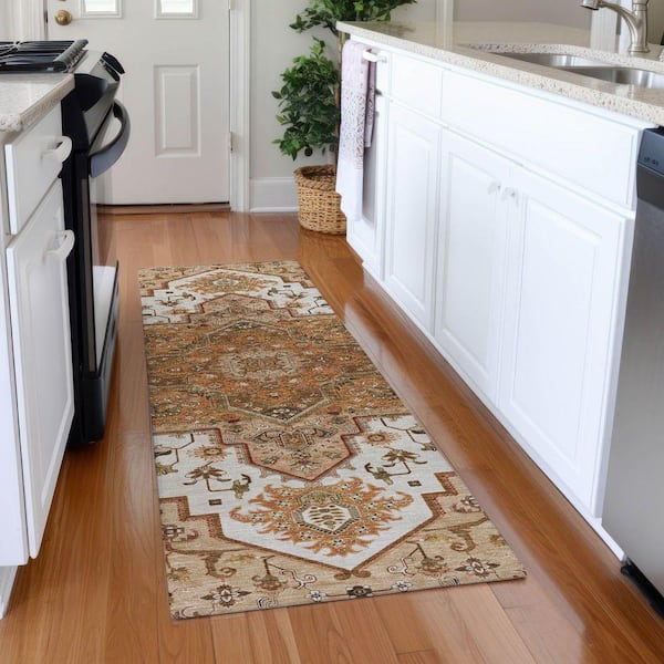 Mayfield Premium Machine Washable Abstract AMF1036 Terracotta 2 ft. 3 in. x 7 ft. 6 in. Runner Rug