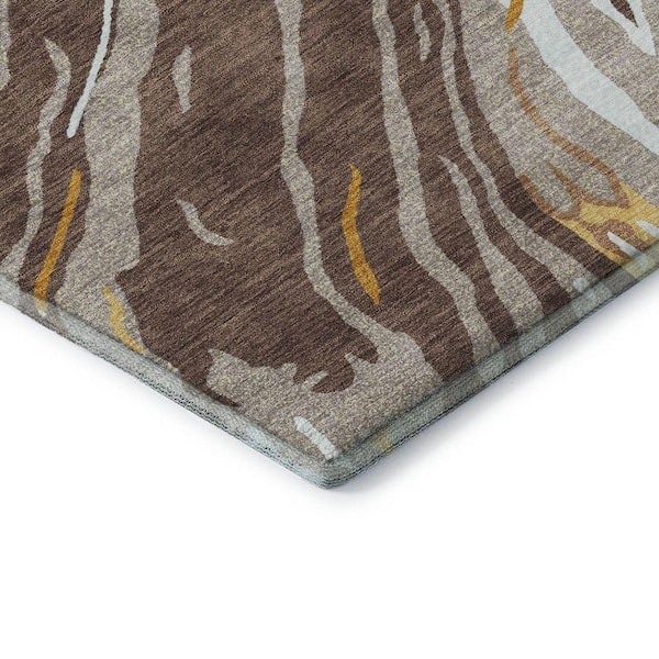 Mayfield Premium Machine Washable Abstract AMF1037 Brown 3 ft. x 5 ft. Area Rug