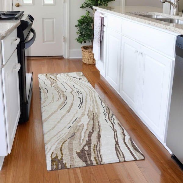 Mayfield Premium Machine Washable Abstract AMF1037 Ivory 2 ft. 3 in. x 7 ft. 6 in. Runner Rug