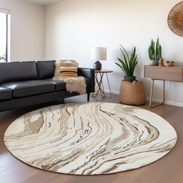 Mayfield Premium Machine Washable Abstract AMF1037 Ivory 8 ft. x 8 ft. Round Rug