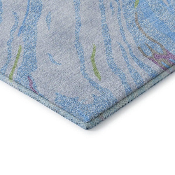 Mayfield Premium Machine Washable Abstract AMF1037 Sky 8 ft. x 8 ft. Round Rug