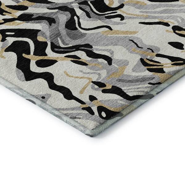 Mayfield Premium Machine Washable Abstract AMF1038 Black 8 ft. x 8 ft. Round Rug