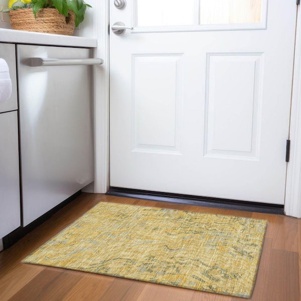Mayfield Premium Machine Washable Abstract AMF1038 Gold 2 ft. x 3 ft. Area Rug