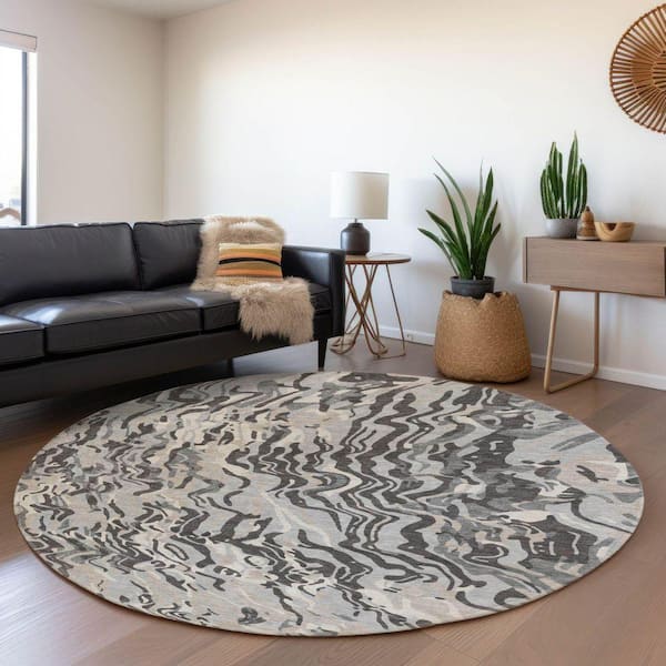Mayfield Premium Machine Washable Abstract AMF1038 Gray 8 ft. x 8 ft. Round Rug