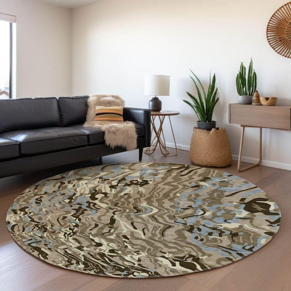 Mayfield Premium Machine Washable Abstract AMF1038 Taupe 8 ft. x 8 ft. Round Rug