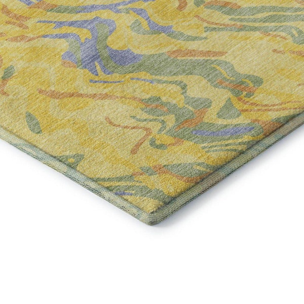 Mayfield Premium Machine Washable Abstract AMF1038 Yellow 3 ft. x 4 ft. Area Rug