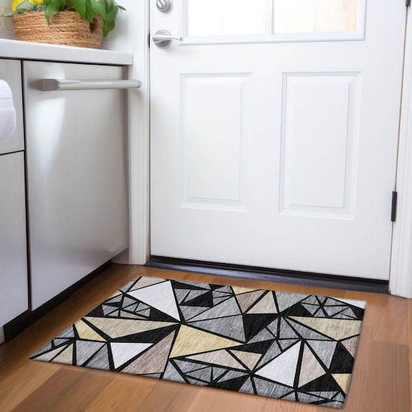 Mayfield Premium Machine Washable Abstract AMF1039 Black 2 ft. x 3 ft. Area Rug