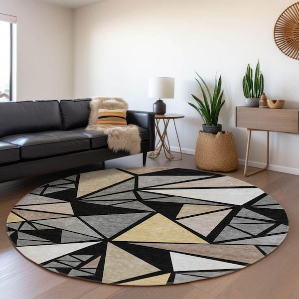 Mayfield Premium Machine Washable Abstract AMF1039 Black 8 ft. x 8 ft. Round Rug