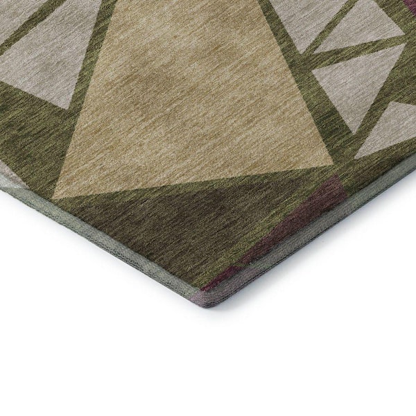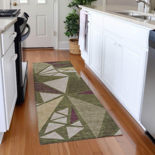 Mayfield Premium Machine Washable Abstract AMF1039 Olive 2 ft. 3 in. x 7 ft. 6 in. Runner Rug