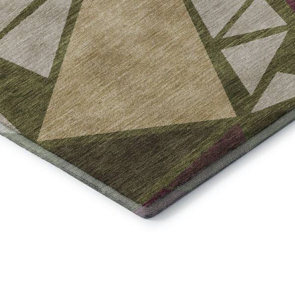 Mayfield Premium Machine Washable Abstract AMF1039 Olive 8 ft. x 8 ft. Round Rug
