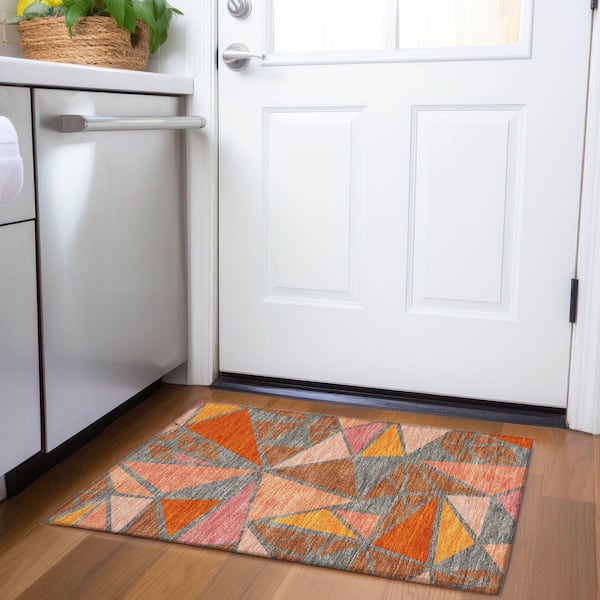 Mayfield Premium Machine Washable Abstract AMF1039 Rust 2 ft. x 3 ft. Area Rug