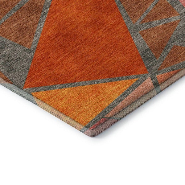 Mayfield Premium Machine Washable Abstract AMF1039 Rust 8 ft. x 8 ft. Round Rug