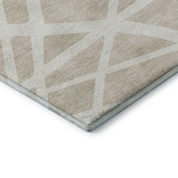 Mayfield Premium Machine Washable Abstract AMF1040 Beige 8 ft. x 8 ft. Round Rug