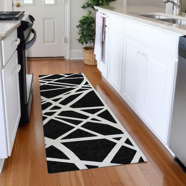 Mayfield Premium Machine Washable Abstract AMF1040 Black 2 ft. 3 in. x 7 ft. 6 in. Runner Rug